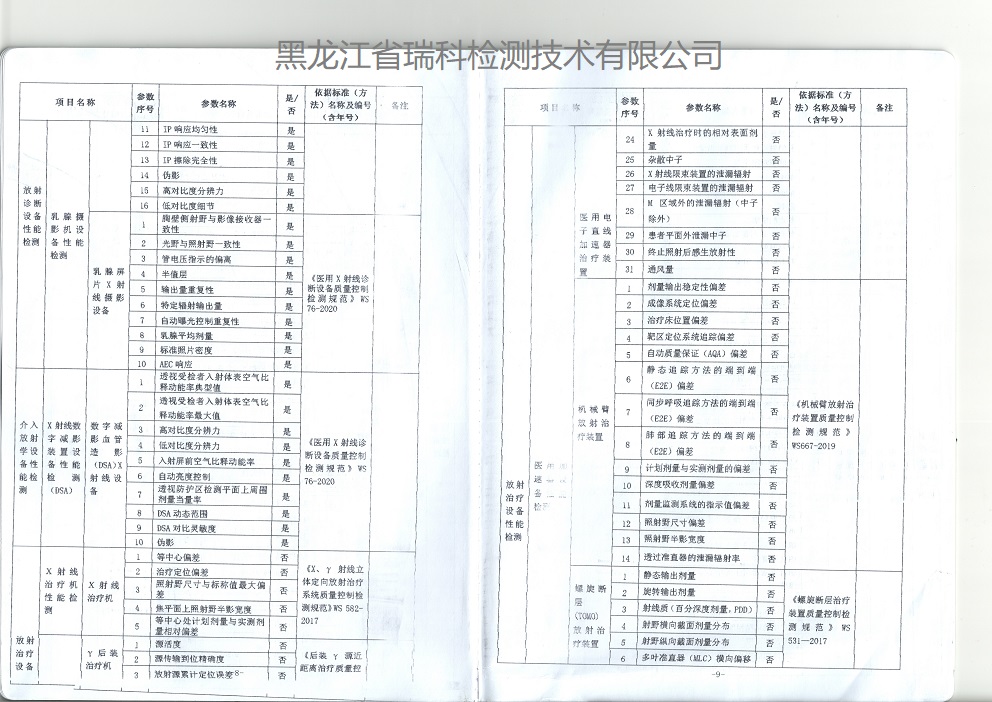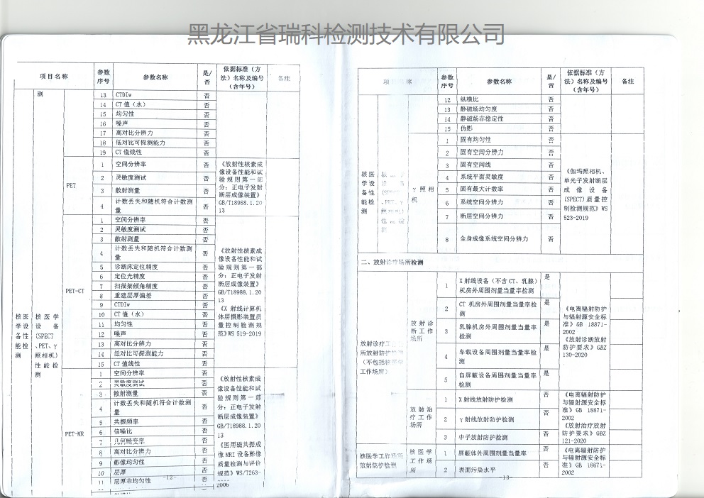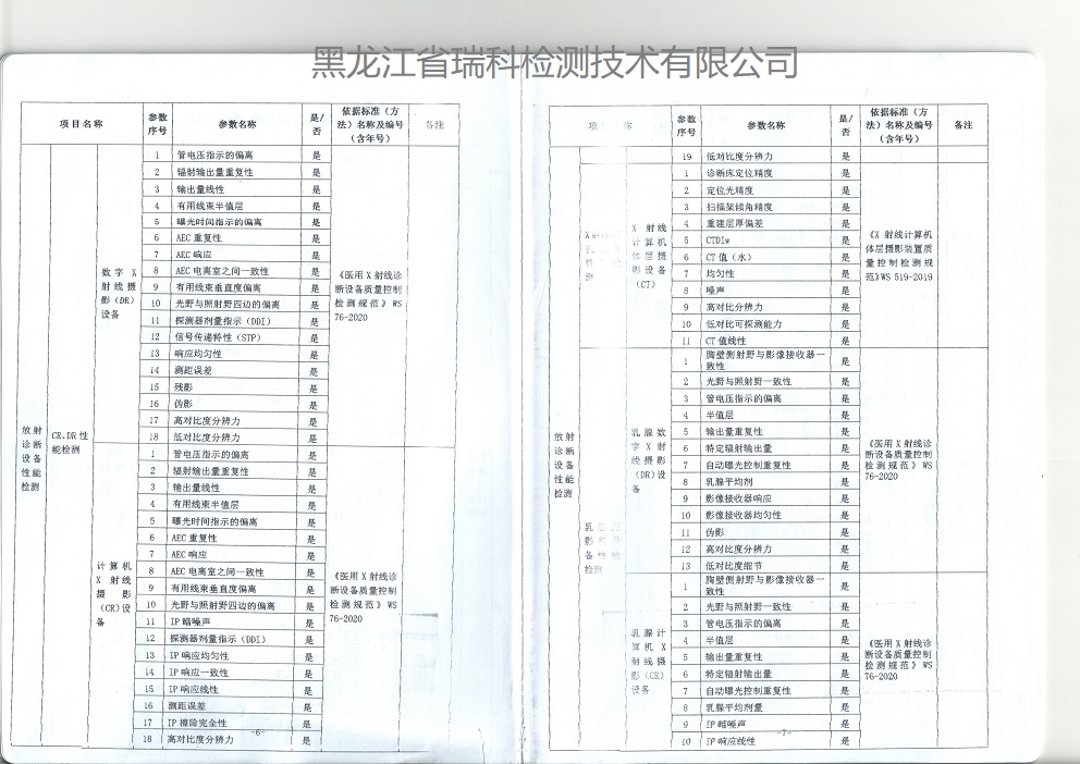 医用诊断X射线CT机、DR机、DSA血管造影、C型臂、摄影机、透视机、牙科机、乳腺机等放射诊疗装置的职业病危害放射防护预评价和控制效果评价。以及上述射线装置的性能检测报告:包括影像质量检测和放射工作场所防护检测。